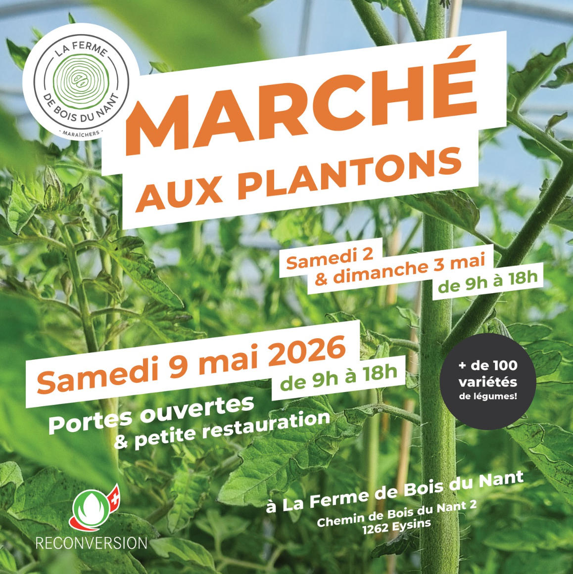 La ferme du bois du Nant Chemin de Bois du Nant 1, Eysins, SwitzerlandMarché aux planton organisé par la ferme du bois du nant à Eysins, Au programme: Vente de plantons pour vos Jardin Animation. Bar Petite réstaurations
